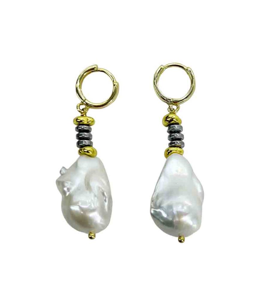 8000.00 ₽Состав: бижутерный сплав, позолота, гематит, барочная жемчужина