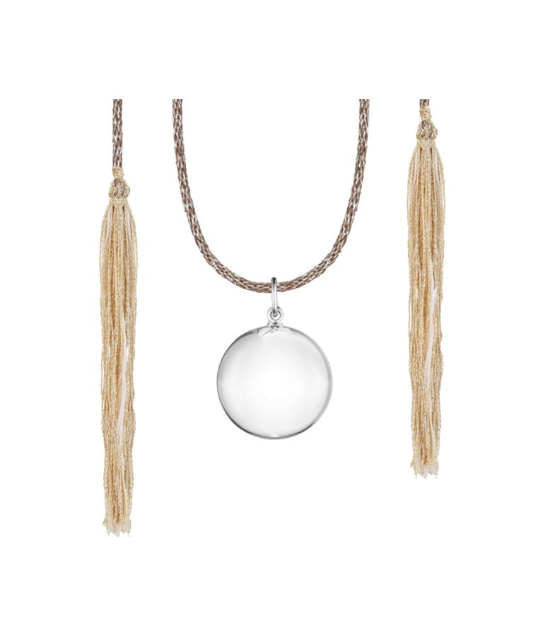 8050.00 ₽Этот кулон, идеальный подарок для любой будущей мамы. Он издает мягкий звон, который приносит спокойствие и гармонию как матери, так и ребенку. После рождения малыш успокаивается знакомой мелодией, услышанной во время беременности. Кулон можно продолжать носить во время кормления или перед сном. Затем его можно вставить в Ilado Lovey для большего комфорта малыша . Состав: латунь, позолота Размеры: диаметр кулона - 20 мм, длина шелкового шнура - 1300 мм