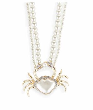 9800.00 ₽Состав: латунь, позолота, кристаллы, жемчуг Длина цепи: 40 см (+ 5 см) Кулон: 1,8 х 1,8 см