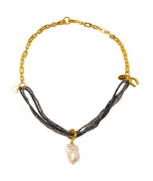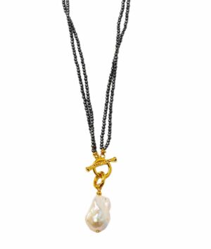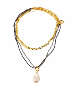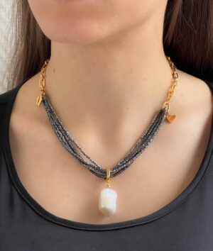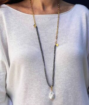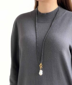VELATTI – Длинное колье-трансформер с гематитом и жемчугом