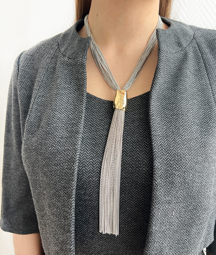 Главная страница » Каталог » Колье » Колье-галстук множество цепей