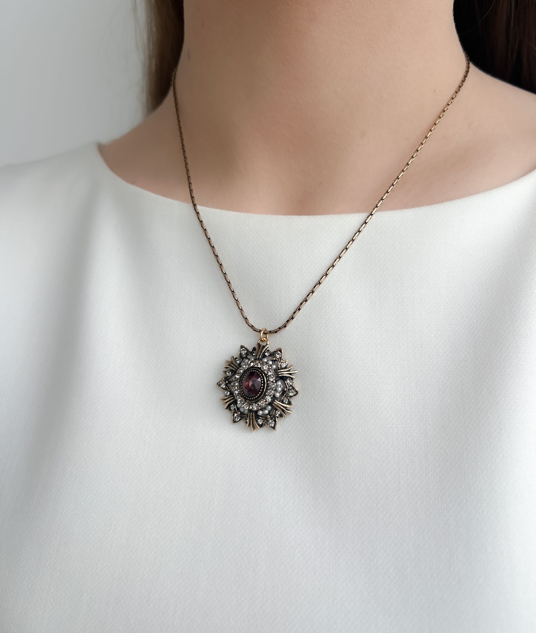 Состав: латунь, позолота, гранат, кристаллы