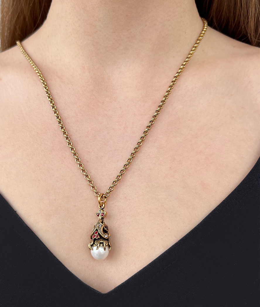Состав: латунь, позолота, гранат, кристаллы, жемчуг