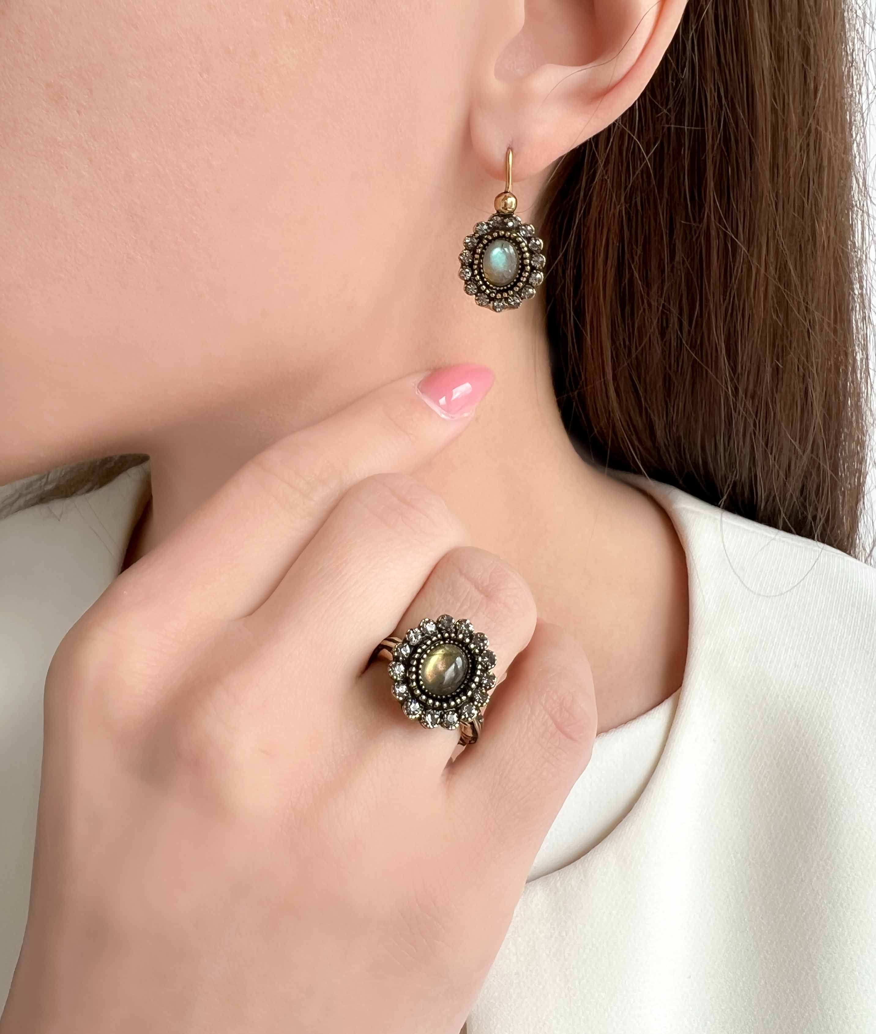 Состав: латунь, позолота, лабрадорит, кристаллы